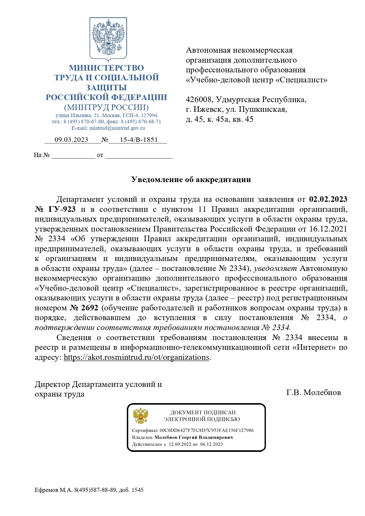 Центр дистанционного обучения «Специалист» занимается подготовкой и аттестацией рабочих кадров в сфере охраны труда, пожарной, экологической и промышленной безопасности, а также повышением квалификации для допуска в СРО.